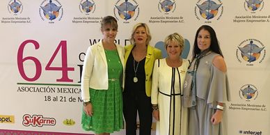 She continuously travels the globe to work and speak at international conferences. Here she is with the then world president of FCEM Laura Frati Gucci from Rome Italy and the incoming World President Marie Christine Oghyl from Paris France and NAWBO CEO, Jen Earle.